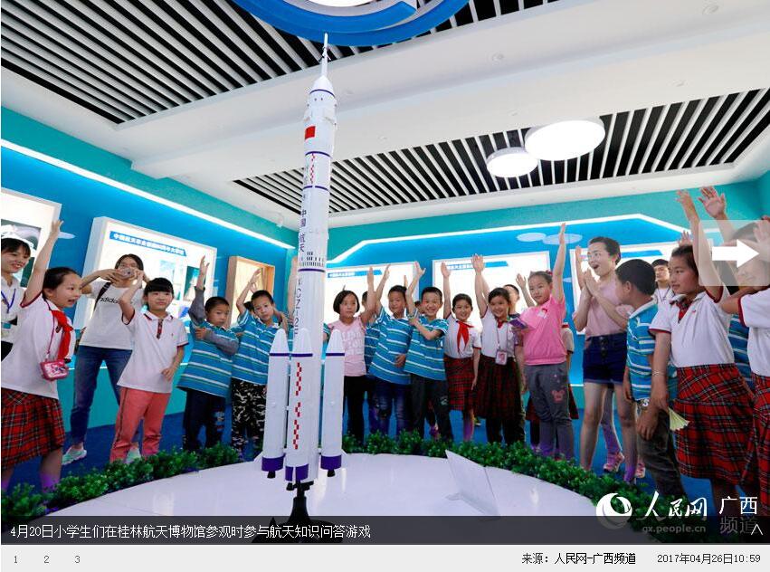 图为小学生们在桂林航天博物馆参观。徐艺萍 摄 中新网广西4月27日电(徐艺萍)“快看,快看,这里有大飞机和火箭!”一走进坐落在pp电子官方网站入口的桂林航天博物馆,来自桂林市新建小学的孩子们都兴奋地欢呼起...