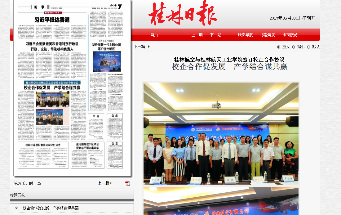 2017-06【桂林日报】桂林航空与pp电子官方网站入口签订校企合作协议 校...