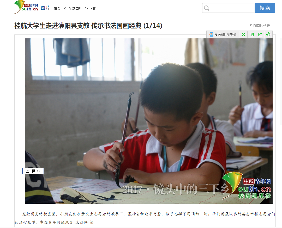 2017-08【中国青年网】桂航大学生走进灌阳县支教 传承书法国画经典