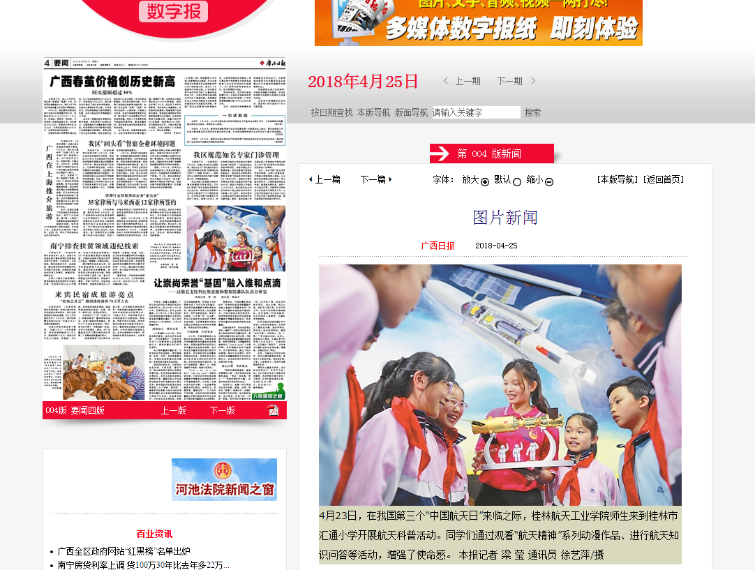 2018-04【广西日报】图片新闻报道pp电子航天科普活动