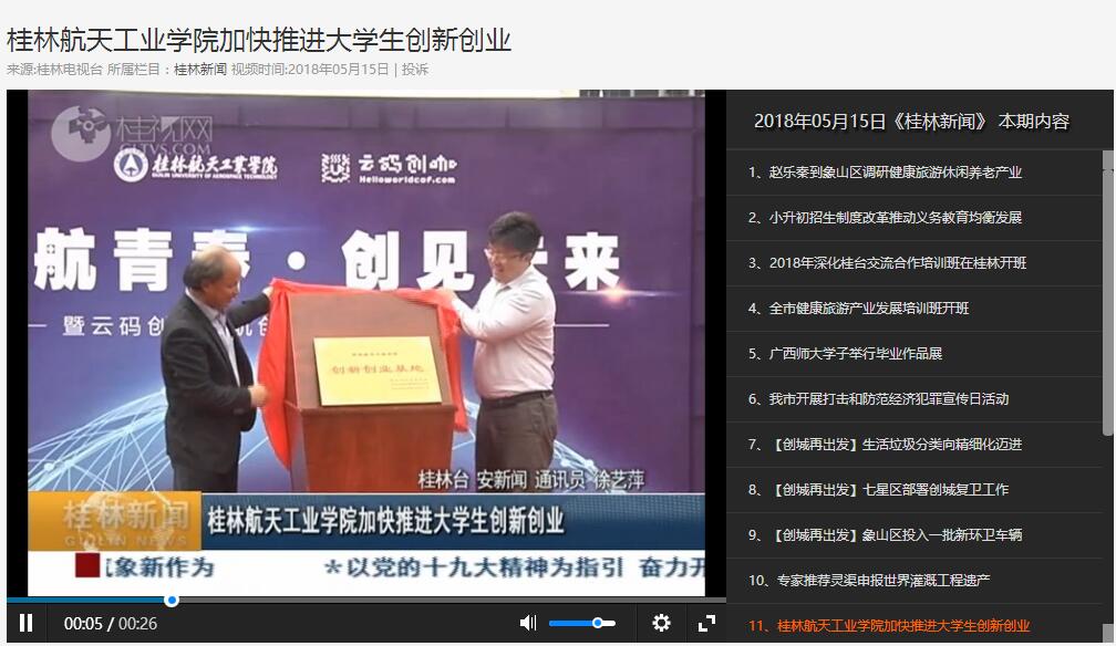 2018-05【桂林电视台】pp电子官方网站入口加快推进大学生创新创业