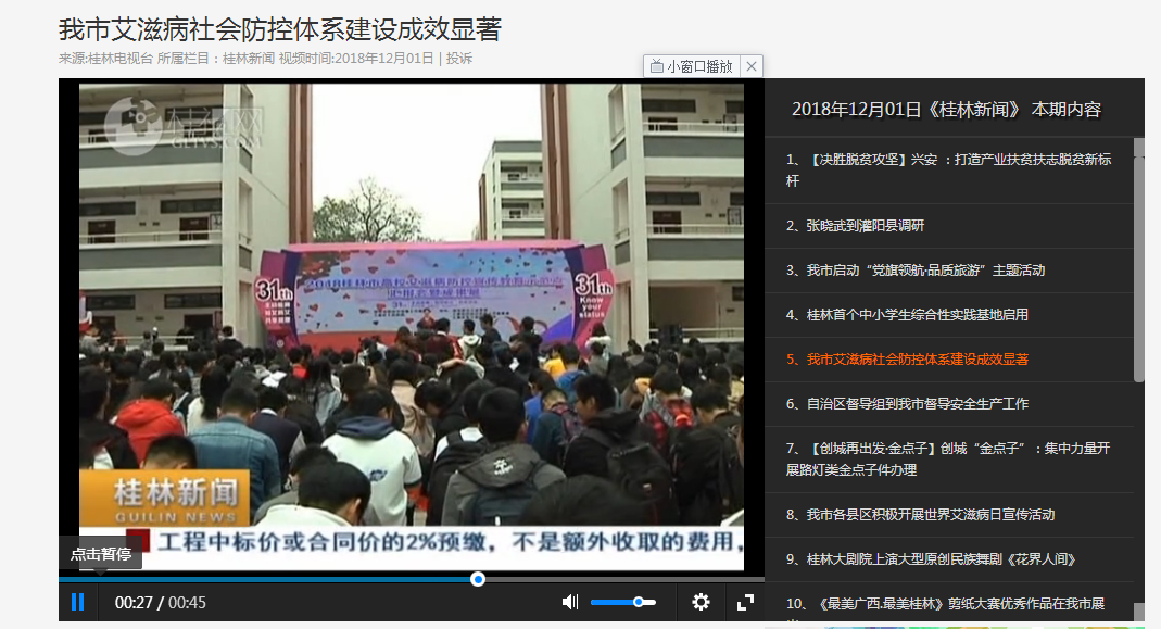 2018-12【桂林电视台】我市艾滋病社会防控体系建设成效显著