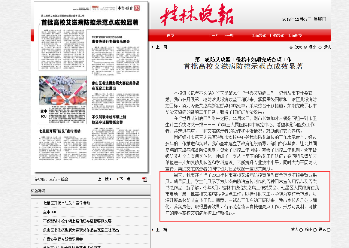 2018-12【桂林晚报】第二轮防艾攻坚工程我市如期完成各项工作首批高...