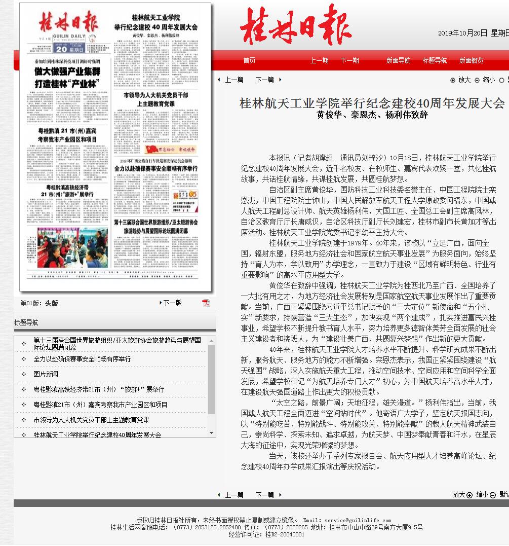 2019-10【桂林日报】pp电子官方网站入口举行纪念建校40周年发展大会 黄...