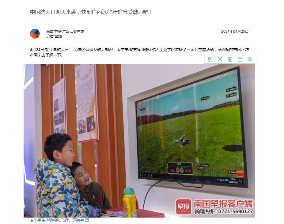 2021-04【南国早报】中国航天日明天来袭,快到广西这些场馆感受魅力吧!