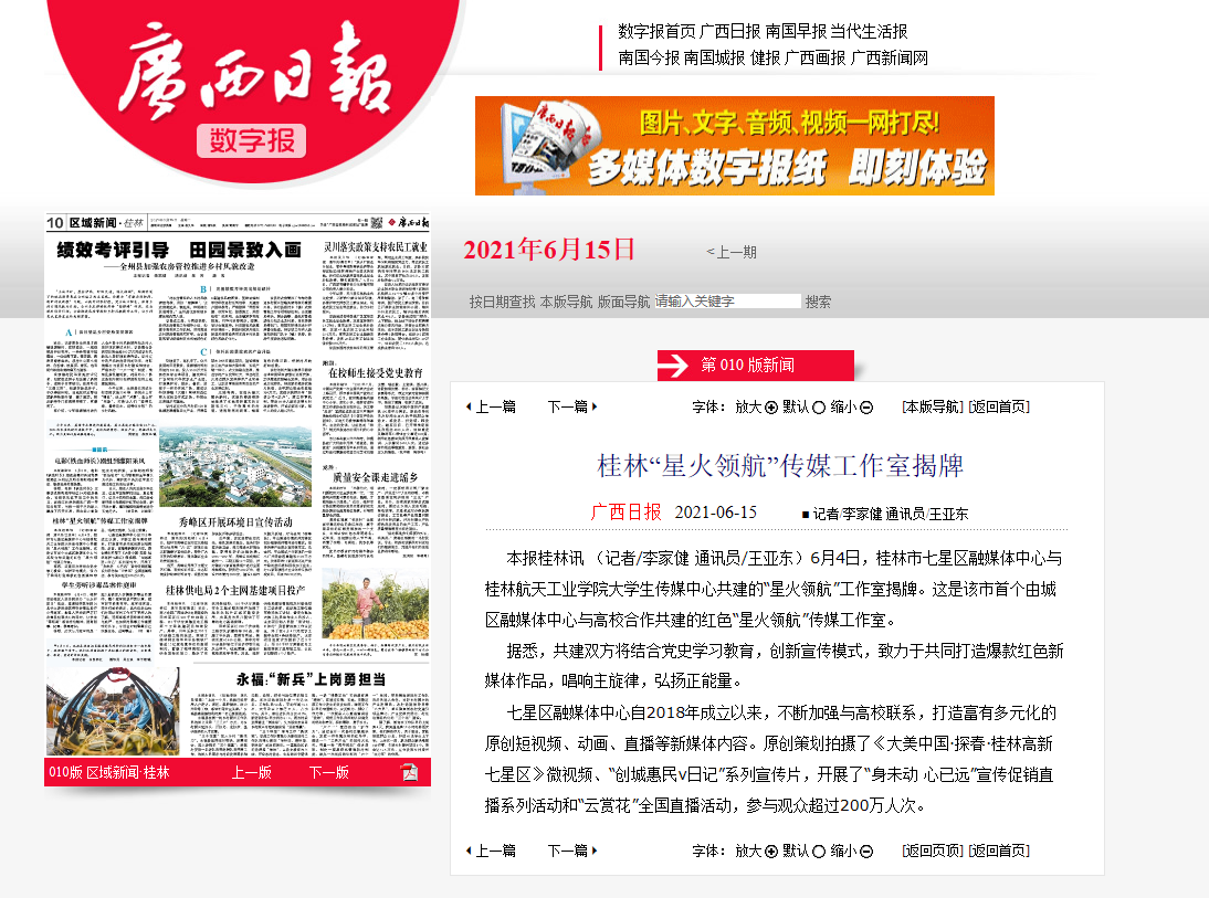 2021-06【广西日报】桂林“星火领航”传媒工作室揭牌