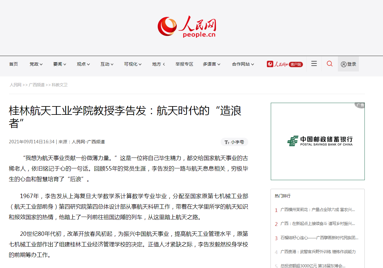 2021-09【人民网】pp电子官方网站入口教授李告发:航天时代的“造浪者”