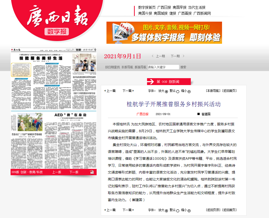 2021-09【广西日报】桂航学子开展推普服务乡村振兴活动