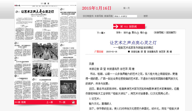 2015-01《广西日报》:让艺术之声点亮心灵之灯——桂航艺术名家系列...