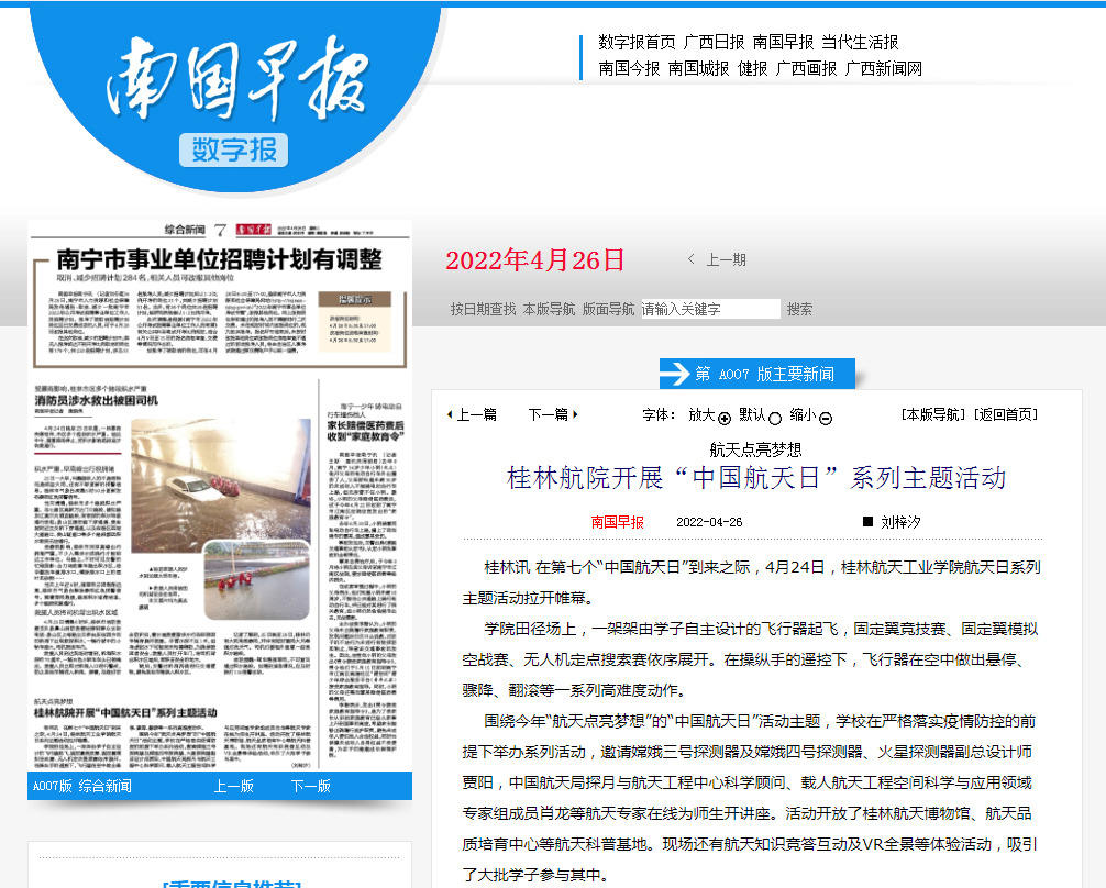 2022-04【南国早报】桂林航院开展“中国航天日”系列主题活动