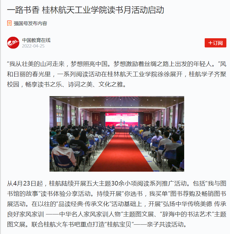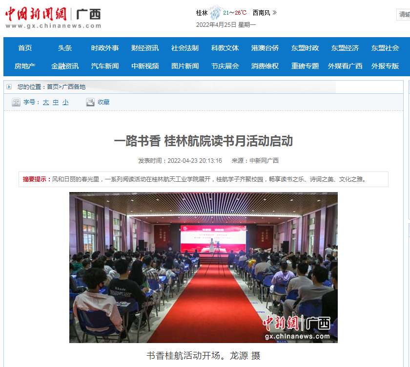 2022-04【中国新闻网】一路书香 桂林航院读书月活动启动