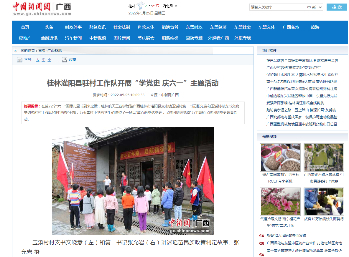 2022-05【中国新闻网】桂林灌阳县驻村工作队开展“学党史 庆六一”主...