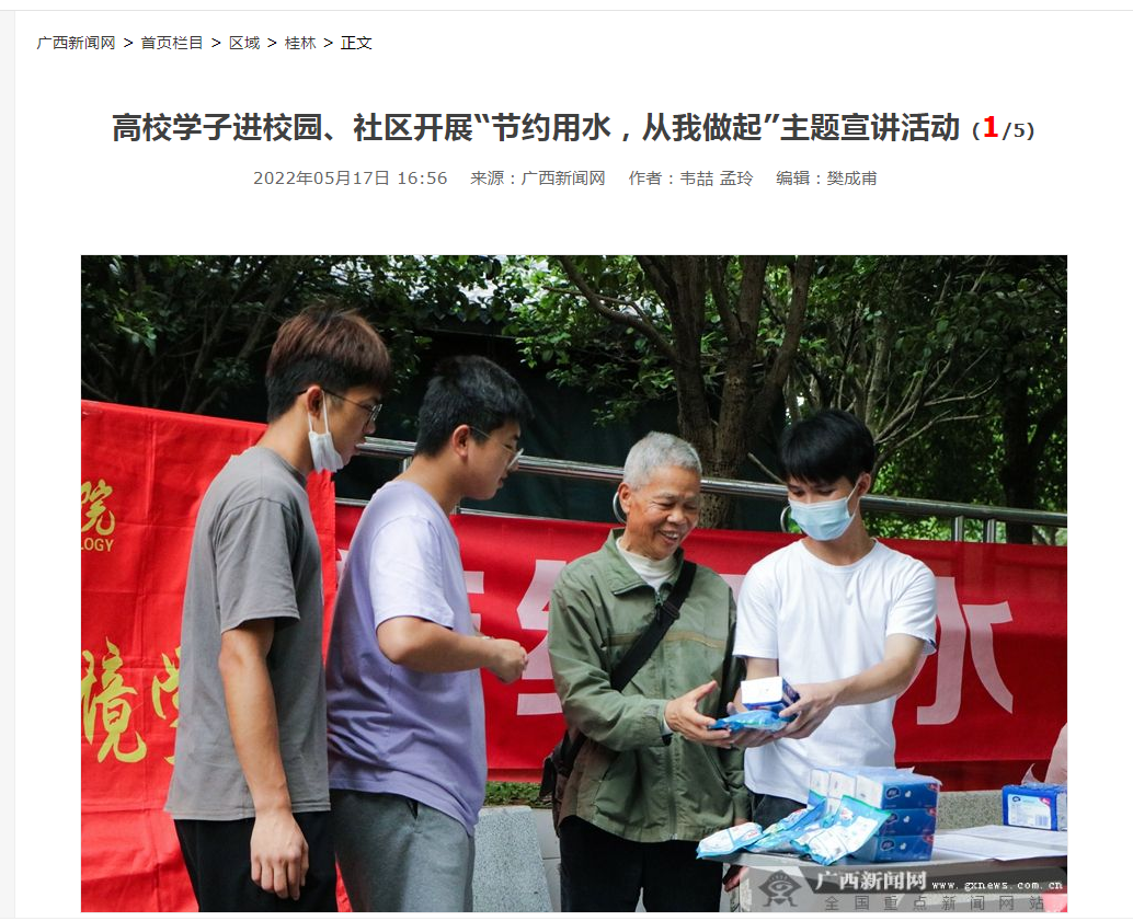2022-05【广西新闻网】高校学子进校园、社区开展“节约用水,从我做...