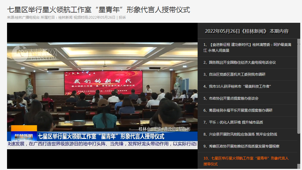 2022-05【桂林电视台】七星区举行星火领航工作室“星青年”形象代言...