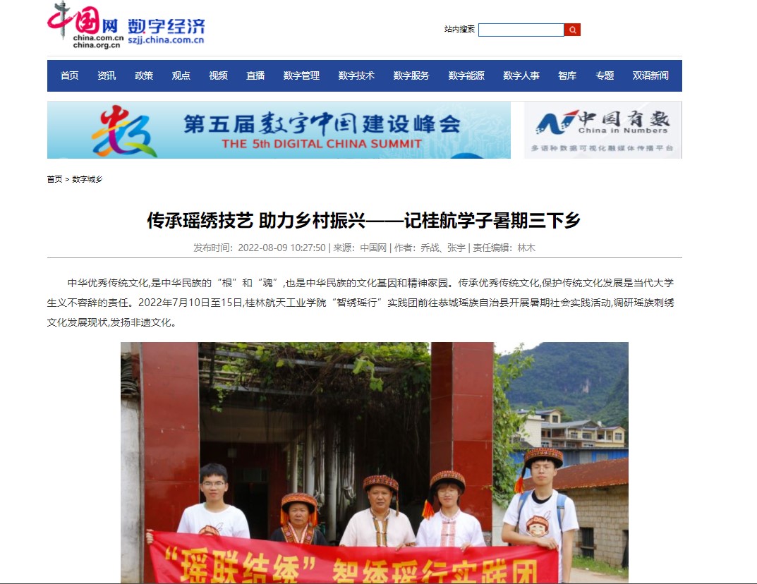 2022-08【中国网】传承瑶绣技艺 助力乡村振兴——记桂航学子暑期三下乡
