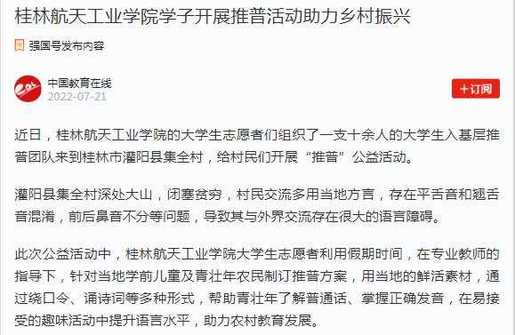 2022-07【学习强国】pp电子官方网站入口学子开展推普活动助力乡村振兴