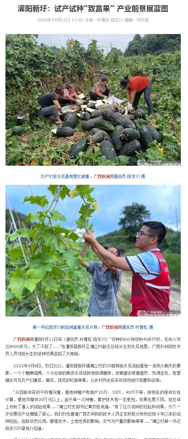 2022-09【广西新闻网】灌阳新圩:试产试种“致富果” 产业前景展蓝图