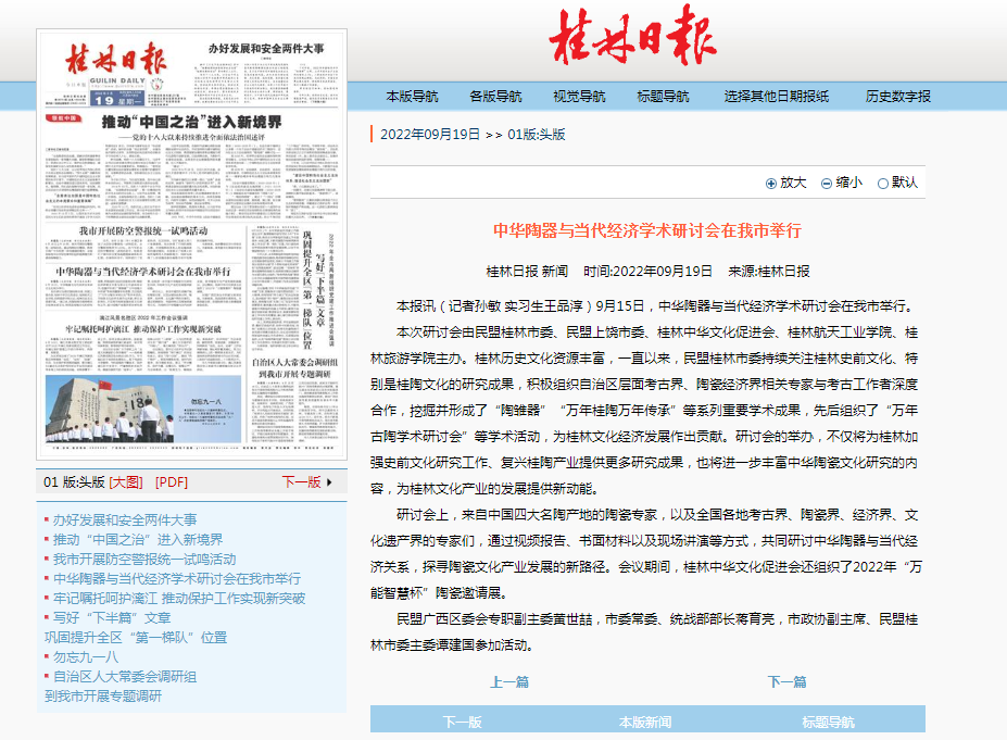 2022-09【桂林日报】中华陶器与当代经济学术研讨会在我市举行