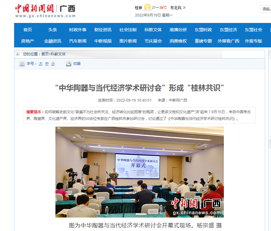 2022-09【中新网】“中华陶器与当代经济学术研讨会”形成“桂林共识”