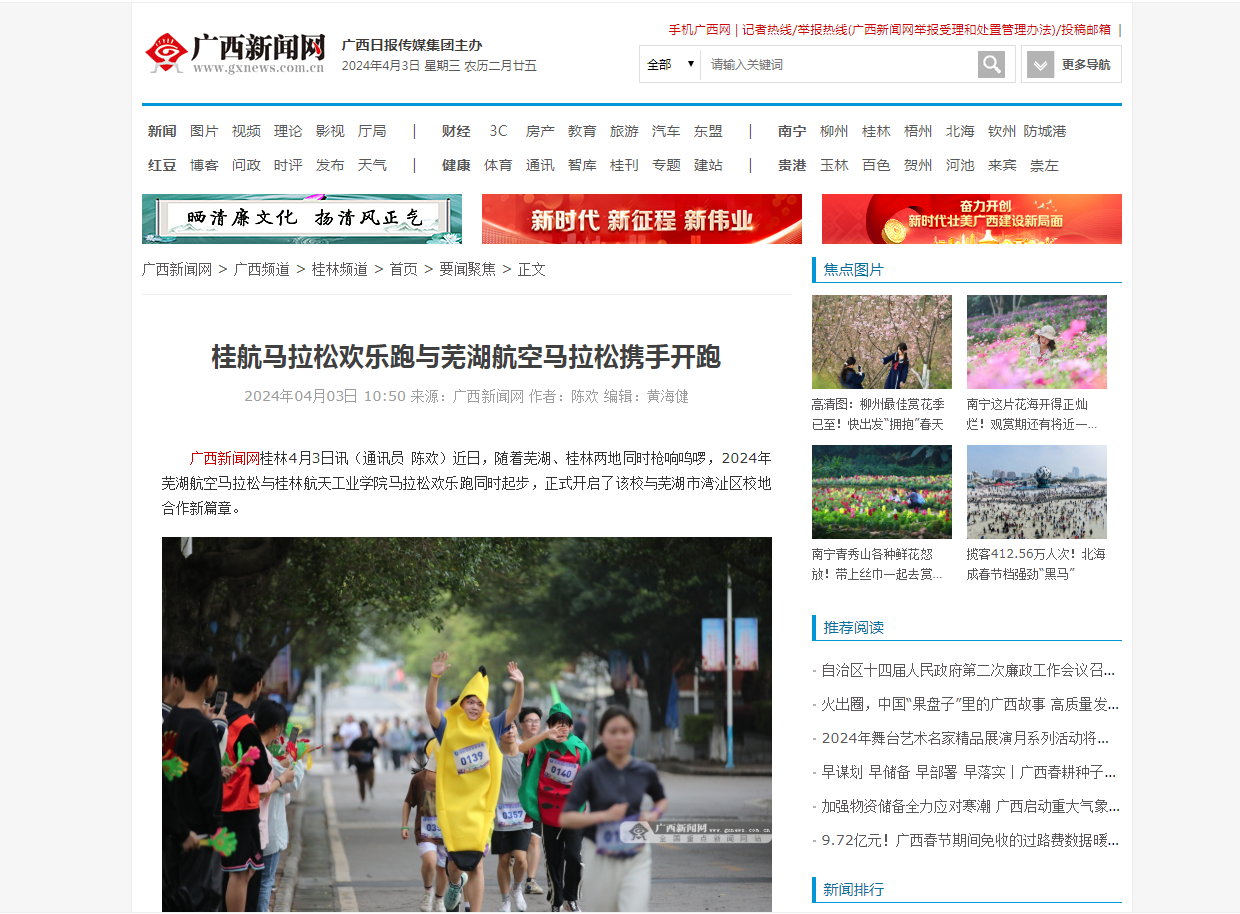 2024-04【广西新闻网】桂航马拉松欢乐跑与芜湖航空马拉松携手开跑