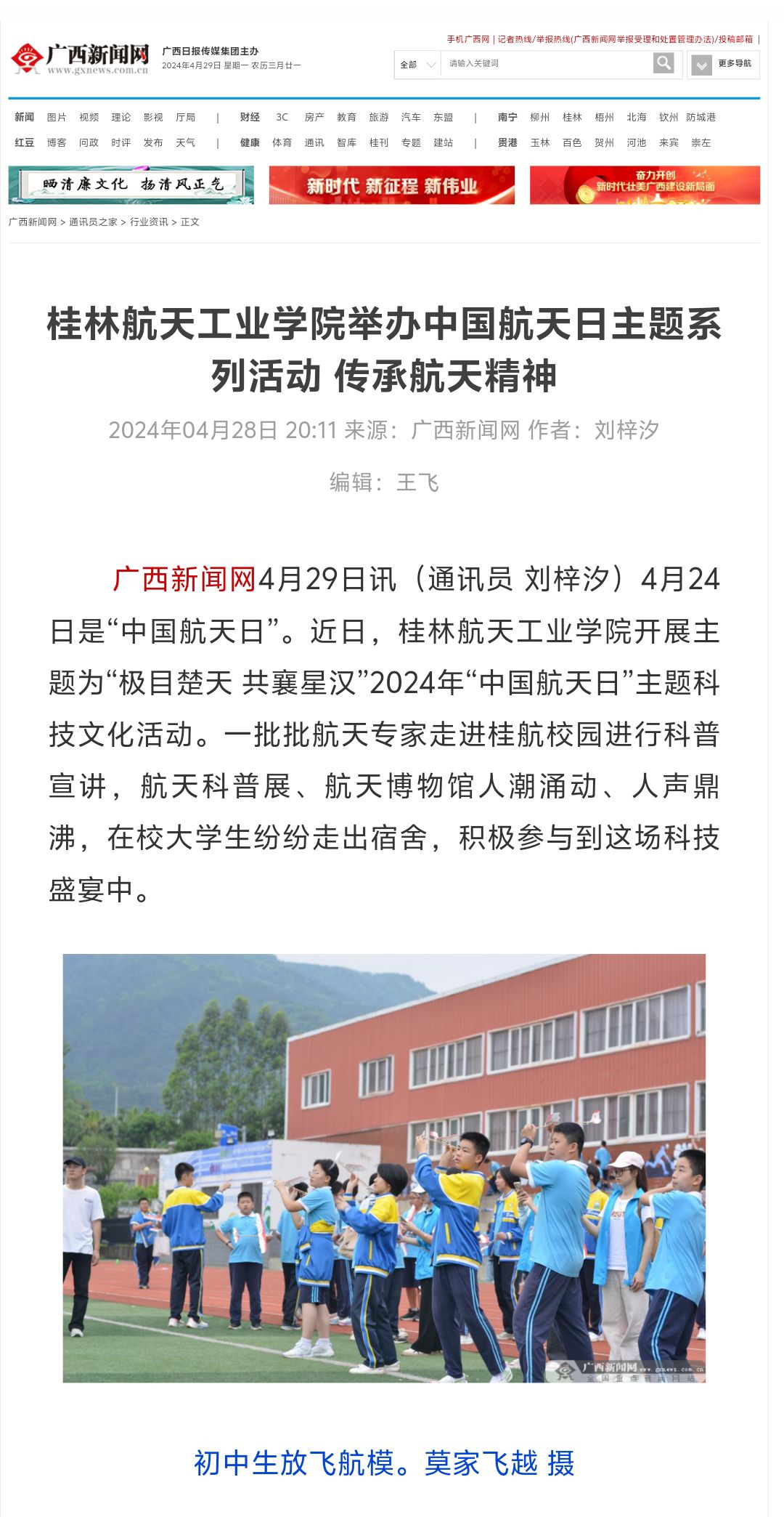 2024-04【广西新闻网】pp电子官方网站入口举办中国航天日主题系列活动 ...