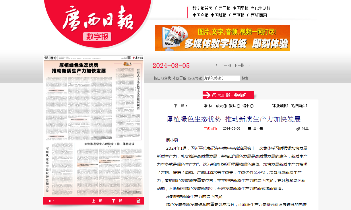 2024-03【广西日报】厚植绿色生态优势 推动新质生产力加快发展