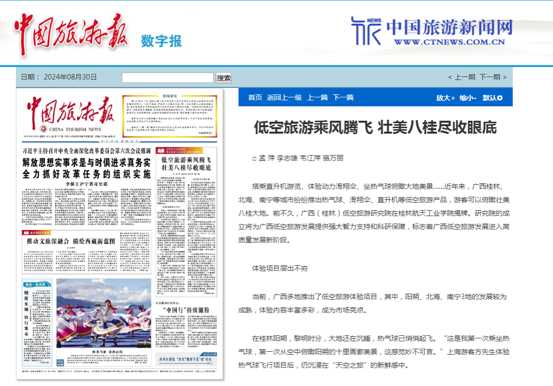 2024-09【中国旅游报】低空旅游乘风腾飞 壮美八桂尽收眼底