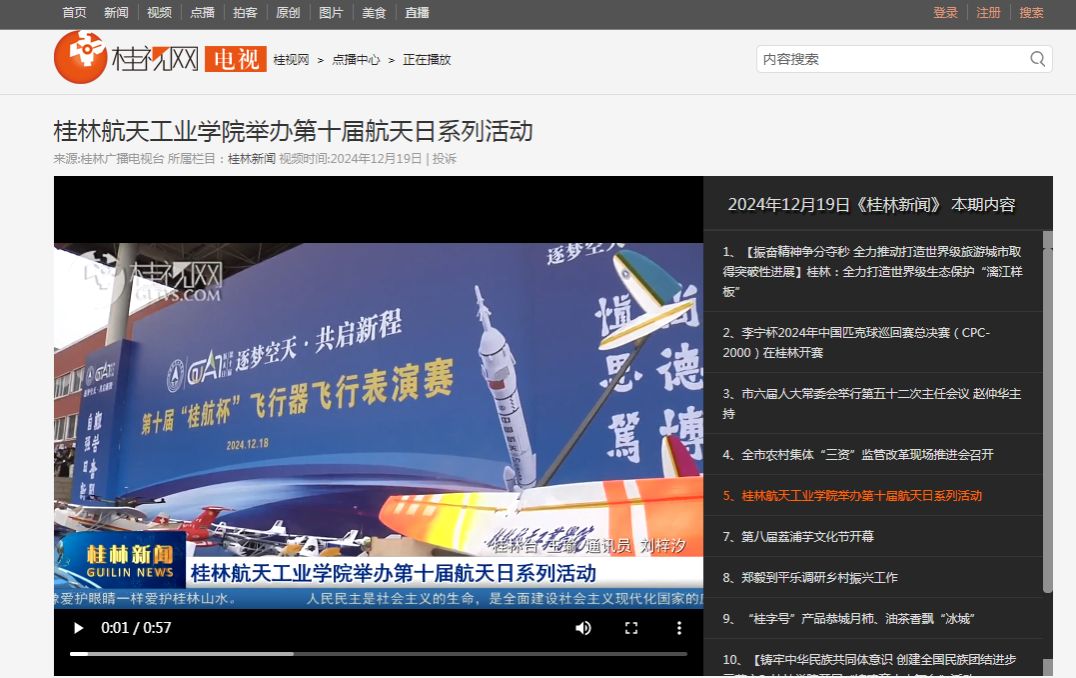 2024-12【桂林电视台】pp电子官方网站入口举办第十届航天日系列活动