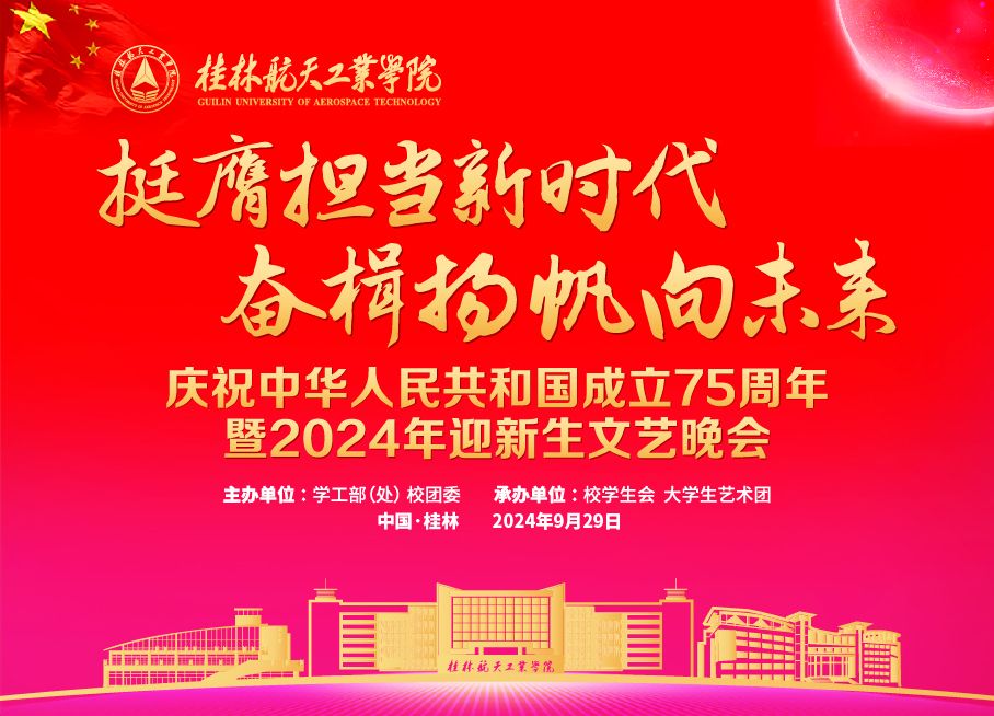 各相关部门、单位:为营造喜迎新生的浓厚氛围,弘扬中国传统文化,赓续航天精神,共同欢庆祖国75岁生日,决定举办“挺膺担当新时代·奋楫扬帆向未来——庆祝中华人民共和国成立75周年暨2024年迎新生文艺晚会”,现...