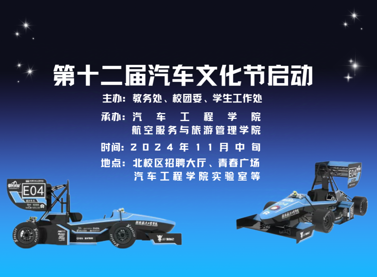 活动简介为展现pp电子学生的风采,提高pp电子学生的综合素质和专业技能,增强同学们服务和竞争意识,特举办第十二届桂航汽车文化节。本次大赛由教务处、校团委、学生工作处主办,汽车工程学院、航空服务与旅游管理学...