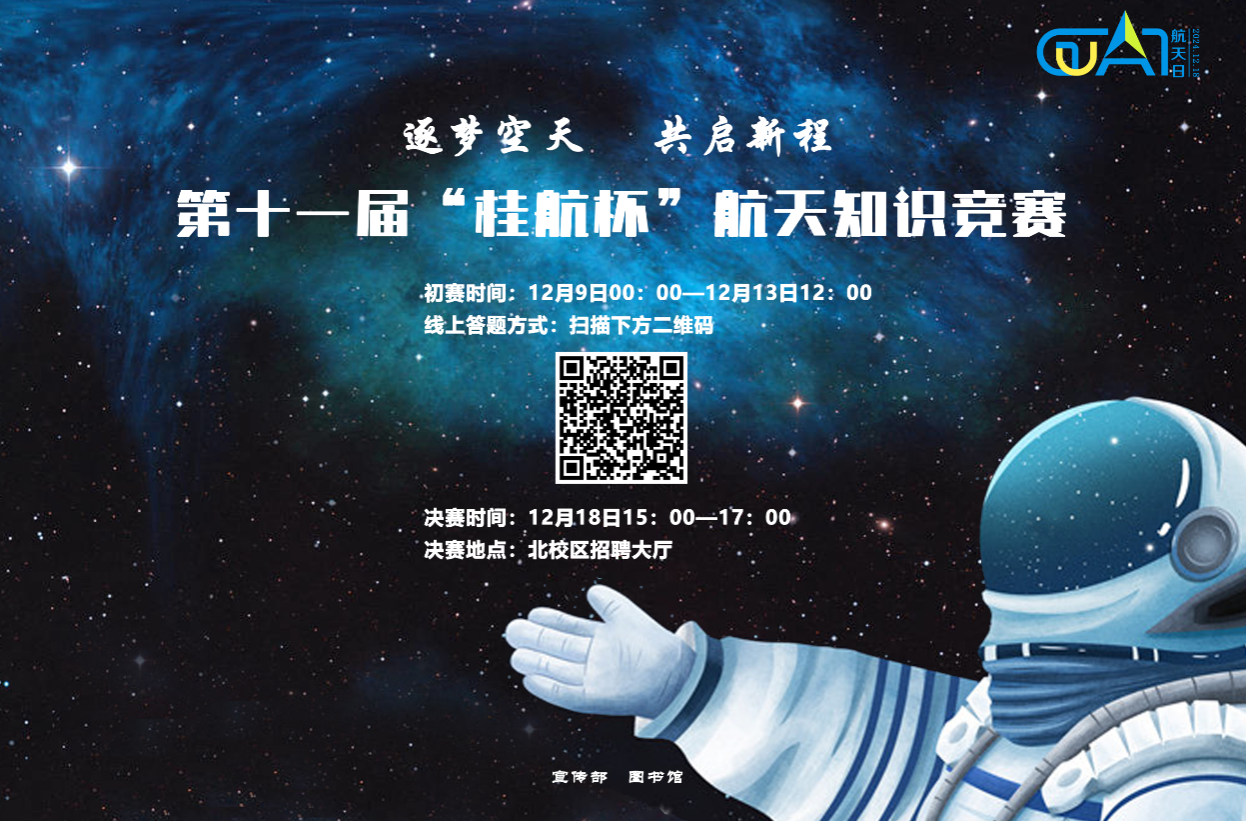 为展示和宣传我国航天事业取得的辉煌成就,促进全校师生不忘初心,同心同力,共圆航天之梦,pp电子特举办pp电子官方网站入口第十一届“桂航杯”航天知识竞赛,以此大力弘扬航天精神,科学普及航天知识。一、活动主题...