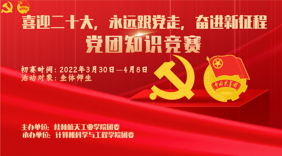 活动简介百年风雨路,青春心向党。2022年将迎来党的第二十次全国代表大会,这是党和国家政治生活中的一件大事。在广西壮族传统节日三月三期间,以歌会友,唱出桂航青年学子心中的爱党之情!通过举办本次活动,激...