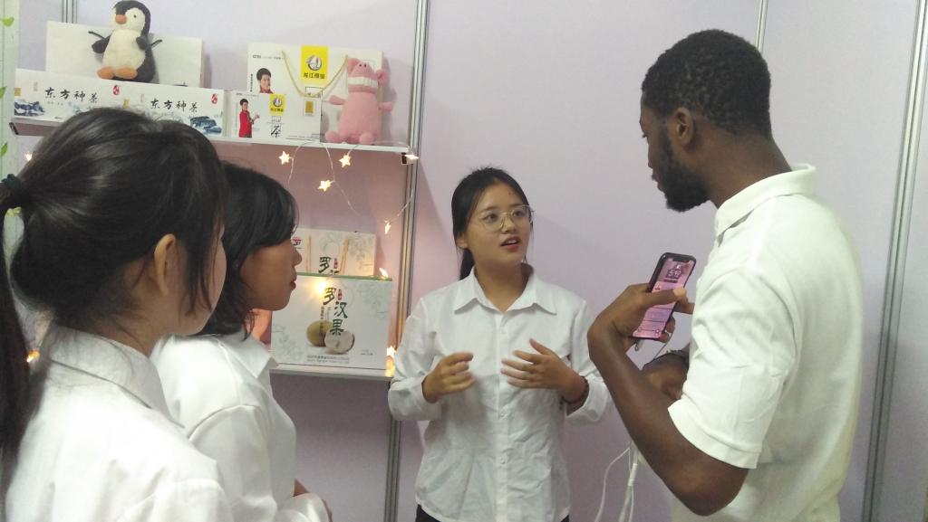 为了提升商务英语专业学生参与国际展会的综合实践能力,10月26日,外语外贸学院2018级商务英语专业69名同学与来自美国、泰国、老挝、科特迪瓦、卢旺达等五国留学生在明志楼六楼国际标准展位处进行了精彩的校园国...