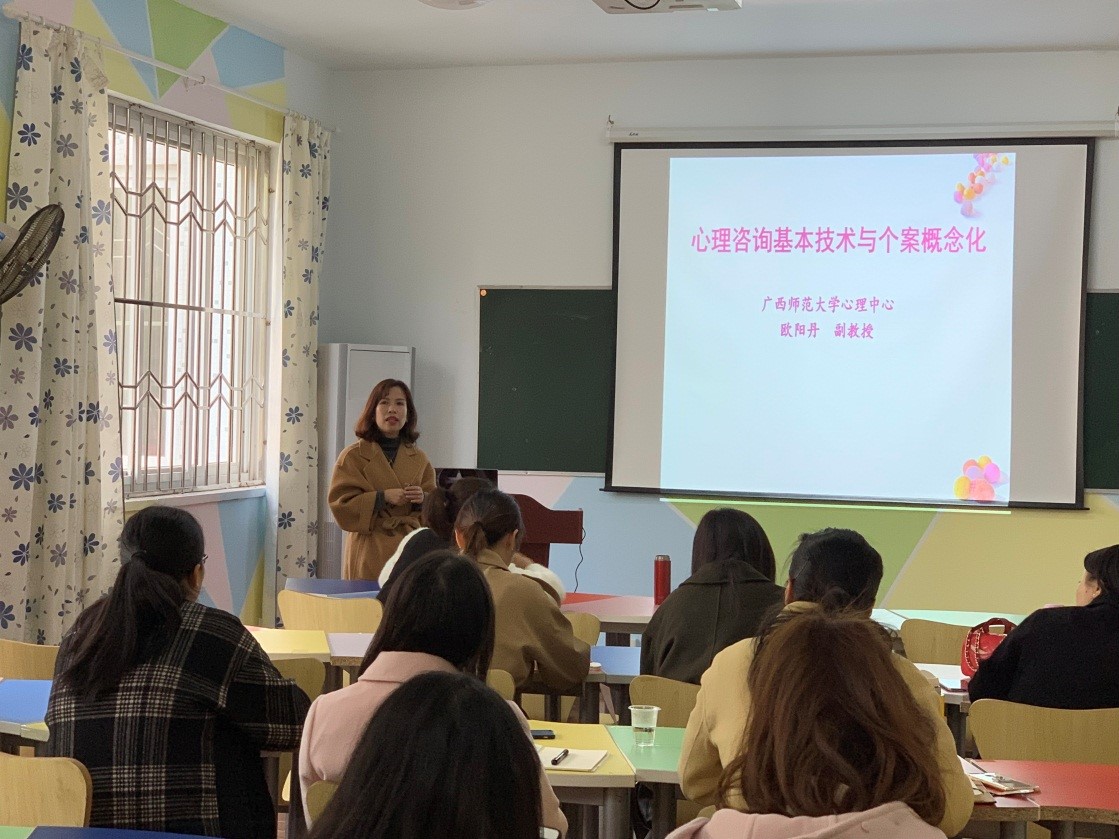 11月25日上午,学工处邀请广西师范大学心理健康教育中心欧阳丹副教授为pp电子专兼职咨询师开展“心理咨询基本技术与个案概念化”专题培训,校心理健康教育与咨询中心专兼职咨询师和部分二级心理工作站负责人参加此...