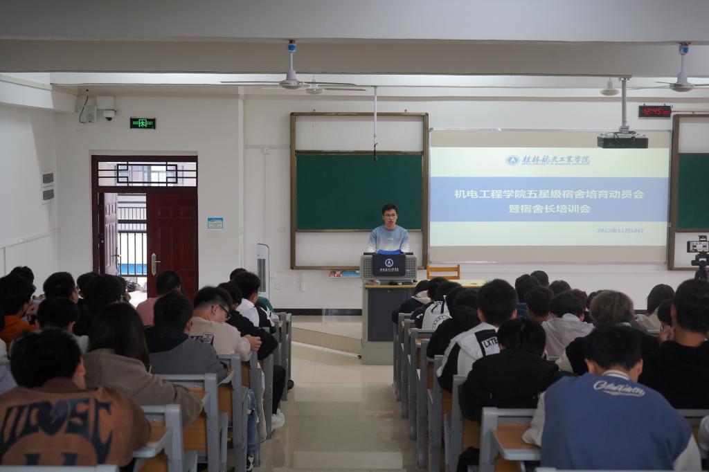 为培养学生自我管理能力,营造良好的宿舍氛围,11月18日中午,机电工程学院在探天楼B301举行2022年秋季学期五星级宿舍培育动员会暨宿舍长培训会,学院相关负责人,辅导员代表及21、22级全体宿舍长参与现场会议,1...