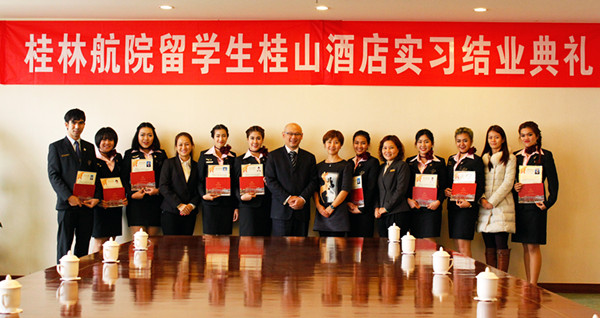 1月7日,pp电子2014级一年期航空服务专业泰国留学生圆满结束了在桂山华星酒店为期两个月的实习。