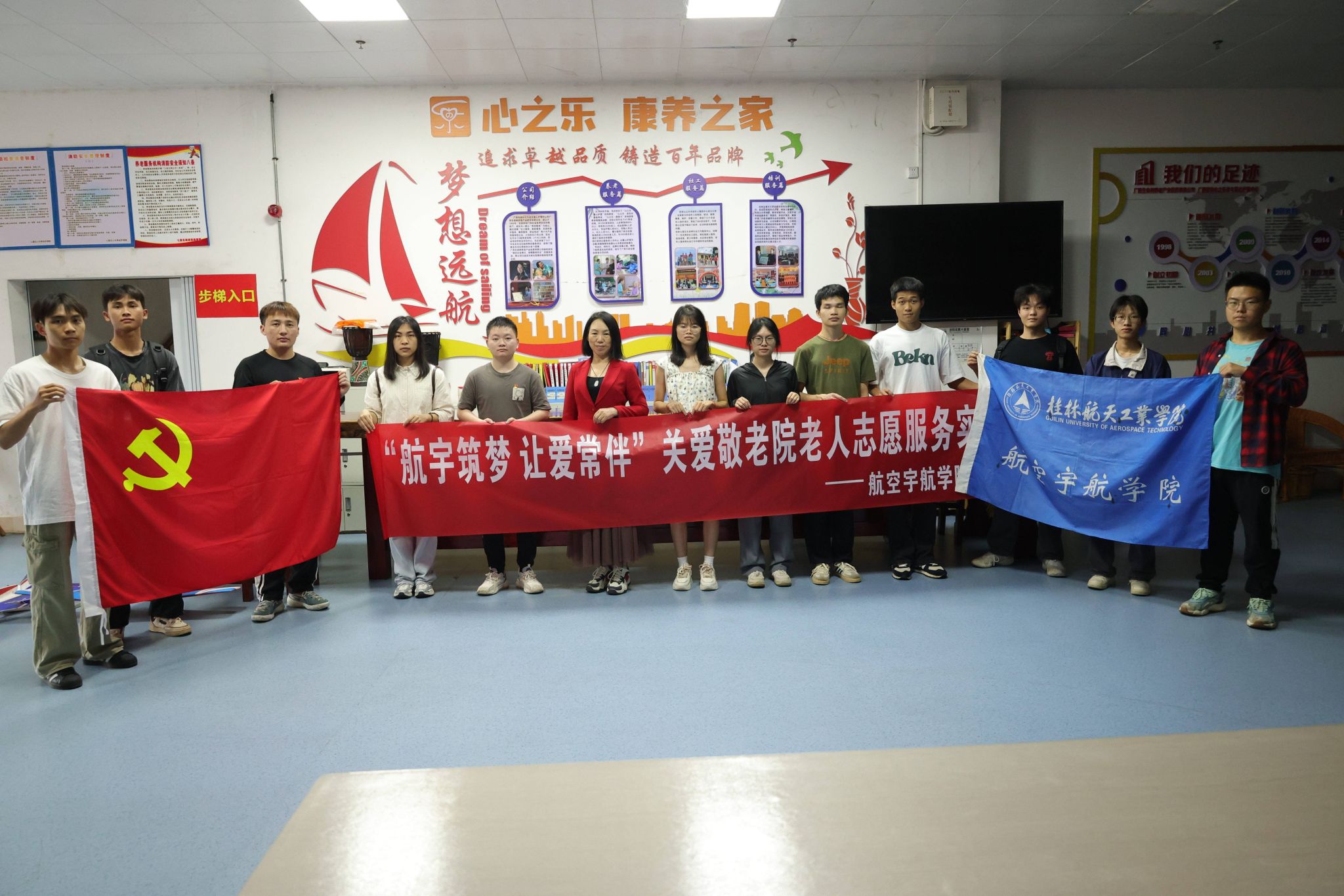 敬老爱老关爱老人是中华民族的传统美德,为传承和倡导社会关注老年人康健,加强大学生思想道德修养,5月18日上午,学生党员代表和团员代表共计12人到达桂林市七星区心之乐养老护理院开展“航宇筑梦 让爱常伴”敬...