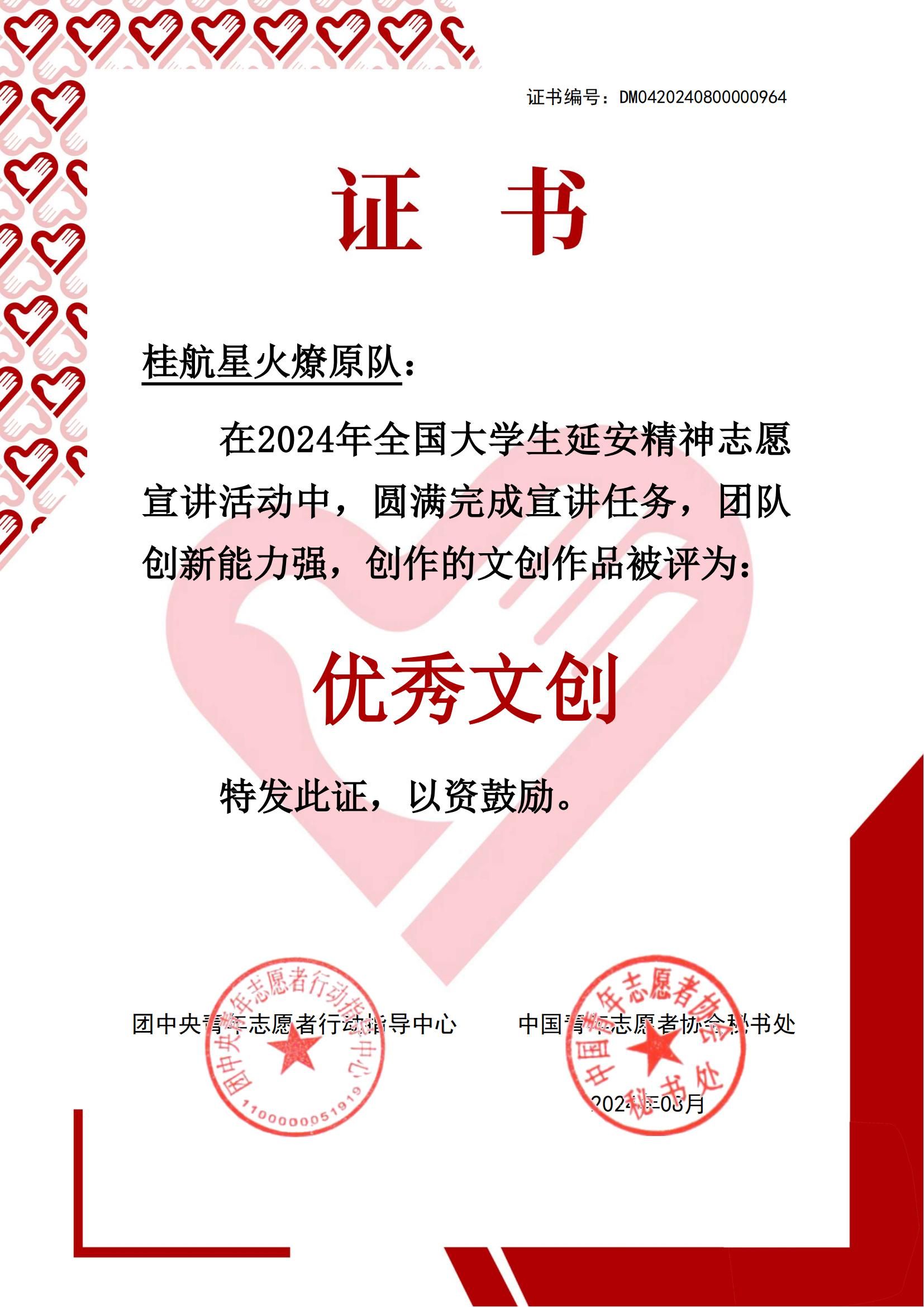 pp电子星火燎原队申请并成功入选2024年全国大学生延安精神志愿宣讲团,5-7月,在全国1000支大学生志愿宣讲队伍中,桂航星火燎原队圆满完成了宣讲任务,团队创作完成的文创产品被评为全国100名“优秀文创”。桂航星...
