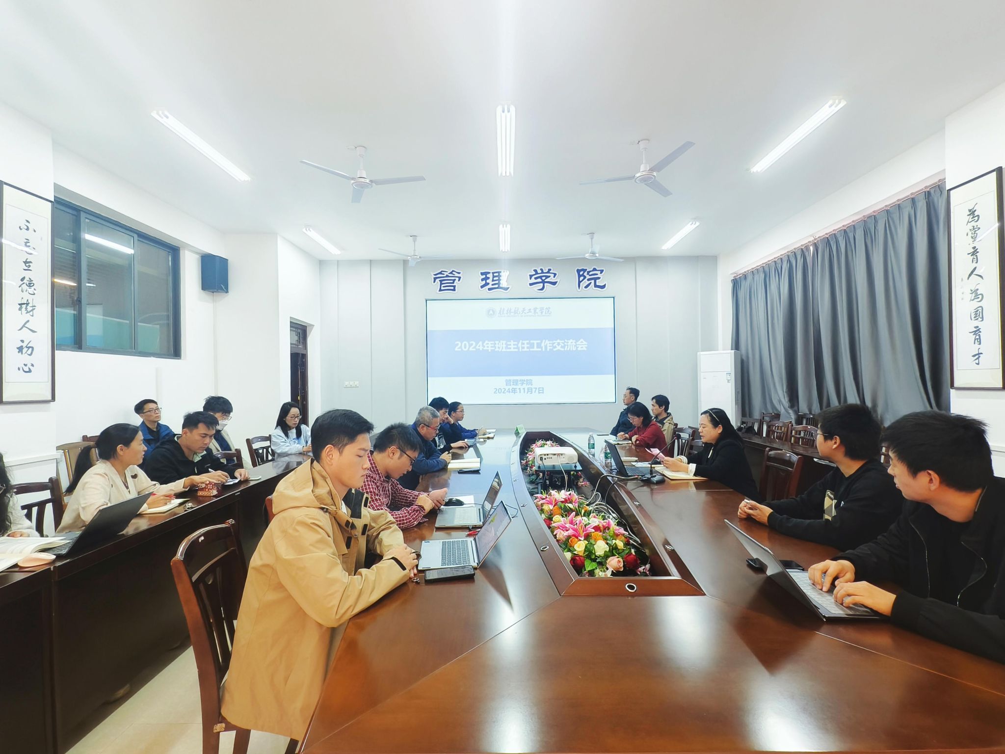为贯彻落实立德树人根本任务,加强班主任队伍建设,11月7日,管理学院在探天楼A座214会议室召开2024年班主任工作交流会。学院分管学生工作负责人和2023级、2024级学生班级的辅导员、班主任参加会议。会上,学院分...