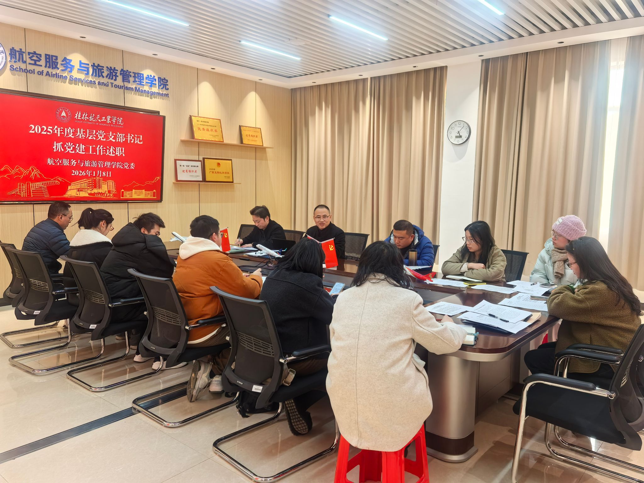 为深入贯彻落实学校党委工作部署,全面检验基层党建工作成效,1月8日,航空服务与旅游管理学院在探天楼C208组织召开2025年度基层党支部书记抓党建工作述职评议会。学院党委书记、副书记、党委委员出席会议,各支...
