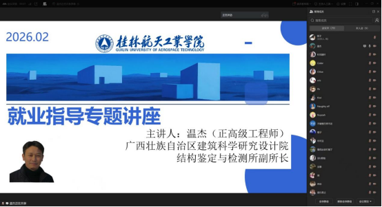 2月9日,能源与建筑环境学院利用寒假,特邀校外导师温杰为2023级工程管理专业学生开展线上就业指导,学院就业负责人、辅导员及全体学生参会。此次邀请的校外导师温杰为正高级工程师、广西建筑科学研究院结构鉴定...