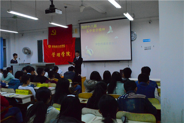 为学习好、领会好、贯彻好党的十八届五中全会精神,11月2日晚,管理学院组织全体学生党员、部分学生干部在明志楼307教室召开专题学习会。