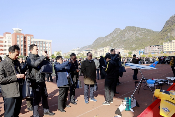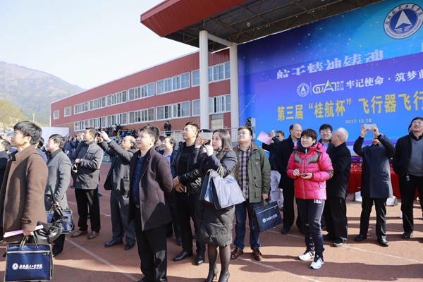 12月18日上午,第三届“桂航杯”航模飞行表演赛在南校区田径场拉开帷幕。原总装备部副部长张建启中将出席并宣布表演赛开幕。桂林市市委常委、副市长何翔,中国航天科工集团人力资源部副部长辛大广,中国航天科技集团人力资源部处长冯胜平,中航贵州飞机有限公司总经理助理、人力资源部部长何建平,中国航天科技国际交流中心主任邓宁丰,学校领导,师生代表等约7000人观看了表演。