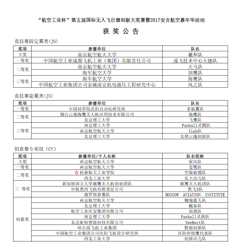 据悉,本届“航空工业杯”国际无人机创新大奖赛由中国航空工业集团公司、浙江省人民政府、中国航空学会和中国保利集团公司联合主办。共吸引了包括新加坡国立大学、莫斯科航空学院、北京航空航天大学、南京航空航天大学、西北工业大学、成都飞机设计研究所、沈阳飞机设计研究所、哈尔滨飞机集团、中航贵州飞机有限责任公司等国内外众多知名航空领域的高校、科研院所、生产企业参加。
