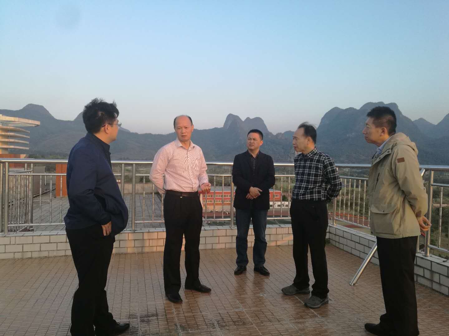 座谈会后,李幼平带领考察组一行观看了学校全景,向他们介绍了学校未来15年的发展蓝图以及新校区二期的航天布局规划。