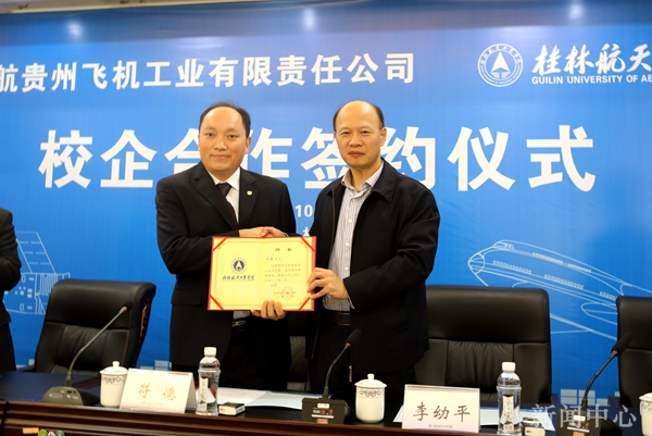 10月20日,pp电子与贵州飞机工业有限责任公司校企合作签约仪式在pp电子飞天楼520会议室举行。我校党委书记李幼平、校长易忠,贵州飞机工业有限责任公司总经理、党委副书记符德,以及校企双方相关部门负责人及师生代表参加了签约仪式。