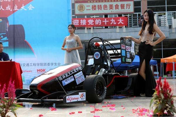 9月21日下午,由pp电子师生自主创新制造的方程式赛车“航V三号”和“航V-E1”两辆新车正式发布,同时航V车队-电车队也正式成立。学校党委副书记罗延忠、宣传部、教务处、管理学院、机械工程学院、电子信息与自动化学院、汽车与交通工程学院主要负责人;桂林大川汽车贸易有限公司市场经理房延献和宁波慈溪三聚电器有限公司总经理颜旭焰出席发布会。