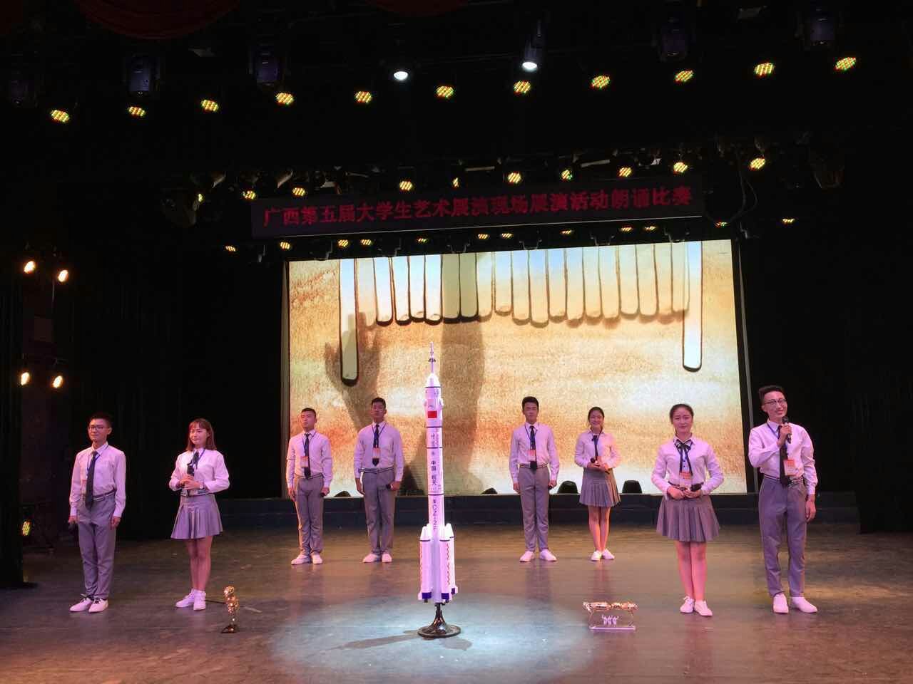 本届展演活动以“理想与信念”为主题,共有51所高校3800多名师生参加现场展演,经过激烈的角逐,pp电子选送的舞蹈《奔·越》荣获舞蹈甲组一等奖,并获得节目优秀创作奖,朗诵《中国航天这条路》荣获朗诵甲组二等奖,大合唱《sing sing sing》、《梦想星光》、小合唱《满江红》和戏剧《创新之路》均荣获相应组别三等奖。其中,舞蹈《奔·越》还入选广西第五届大学生艺术展演闭幕式,同学们以饱满的激情精彩演绎了航天工匠们的故事,俘获了在场观众的心,得到了一致好评。入选参展的《听说视频工作室》荣获学生艺术实践工作坊类三等奖,在展览期间,自治区高校工委书记、教育厅厅长莫诗浦还亲临《听说视频工作室》展位指导。