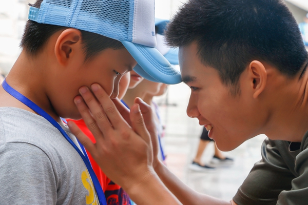 头顶着烈日细致讲解,还要耐心照顾小营员们,活动顺利举办,大学生志愿者们却忙出了一身汗。但是,大家说,看着小朋友们积极参与的热情和纯真的笑脸,这些都无怨无悔。