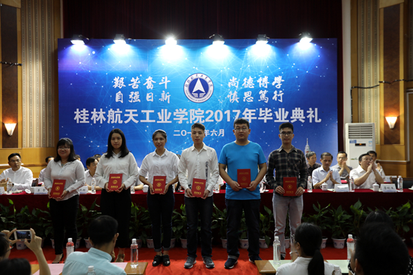 毕业典礼上,党委副书记罗延忠代表学校宣读了《pp电子官方网站入口关于表彰2017年考取硕士研究生的毕业生的决定》、《关于授予罗文君等学生“优秀毕业生”称号的决定》、《关于颁发2017届毕业奖学金的决定》。校领导为以上奖项获得者颁奖。